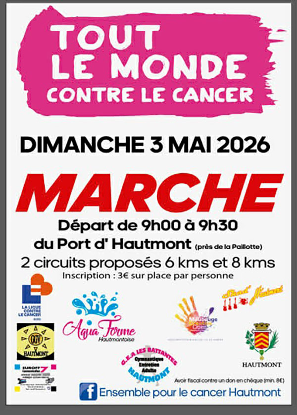 Participez à une marche conviviale et ouverte à tous au départ du Port d’Hautmont pour soutenir la lutte contre le cancer.